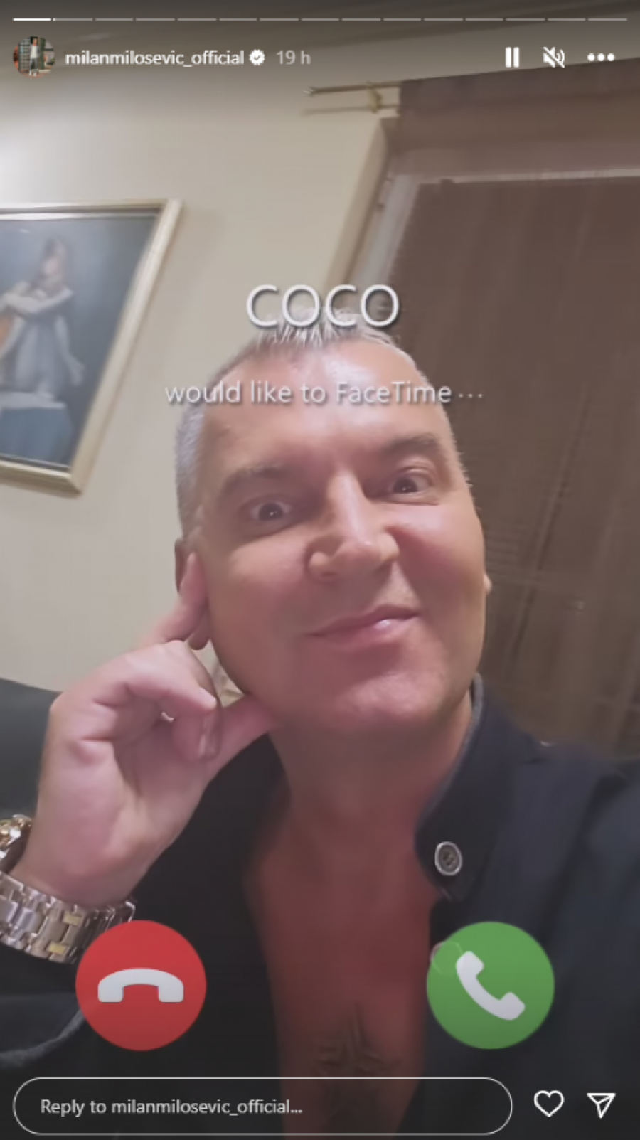Voditelj Milan Milošević, poznat po svom šarmu i duhovitosti, odlučio je da isproba nešto novo i zabavno na Instagramu. Objavio je Instagram priču u kojoj se snimao koristeći filter koji simulira dolazni poziv. Evo kako je to izgledalo: