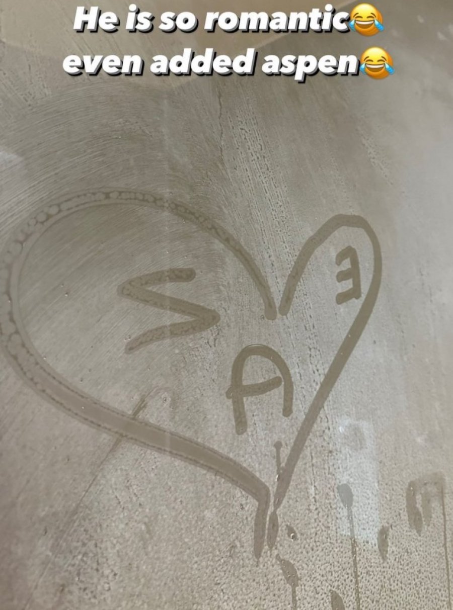 Influenserka je pokazala i kako joj je izabranik romantičan, pa je uslikala i podelila sliku iz toaleta gde je na zamagljenom staklu od pare posle kupanja nacrtao srce i napisao prva slova njihovih imena, gde je spomenuo i njenog psa Aspena.