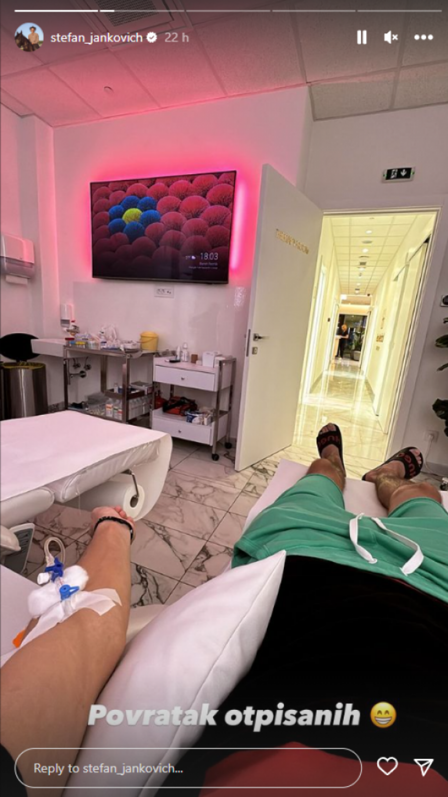 Tako je i sada završio u jednoj privatnoj klinici, gde je hitno trebao da primi infuziju, jer mu je imunitet opao, verovatno usled ovim klimatskih promena. Janko je na Instagram storiju objavio kako leži, dok mu je u ruci priključena infuzija, te se oglasio i rekao kako se oseća: