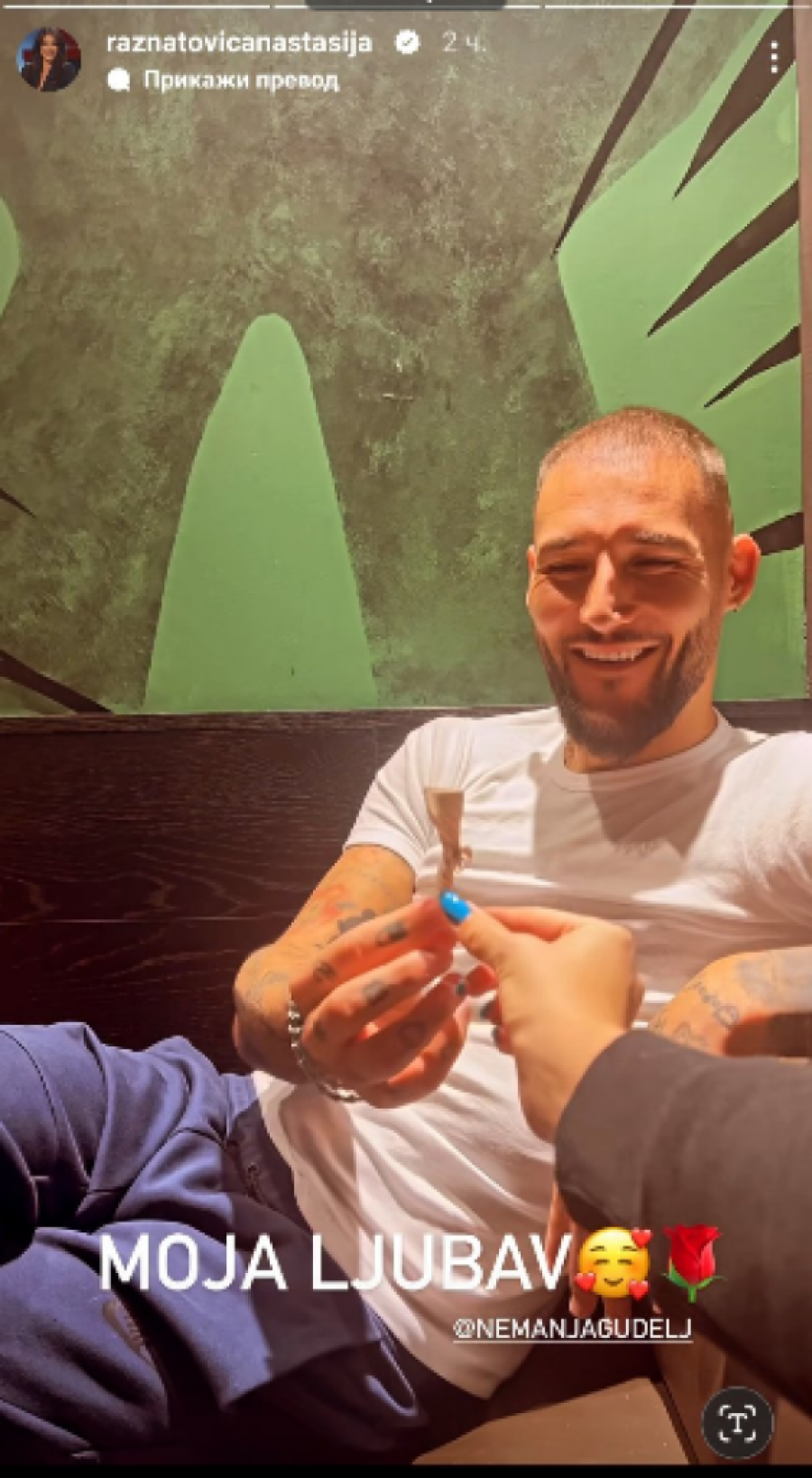 Anastasija je sada podelila snimak, na kojem se može videti Nemanja kako joj pravi ružu od salvete.