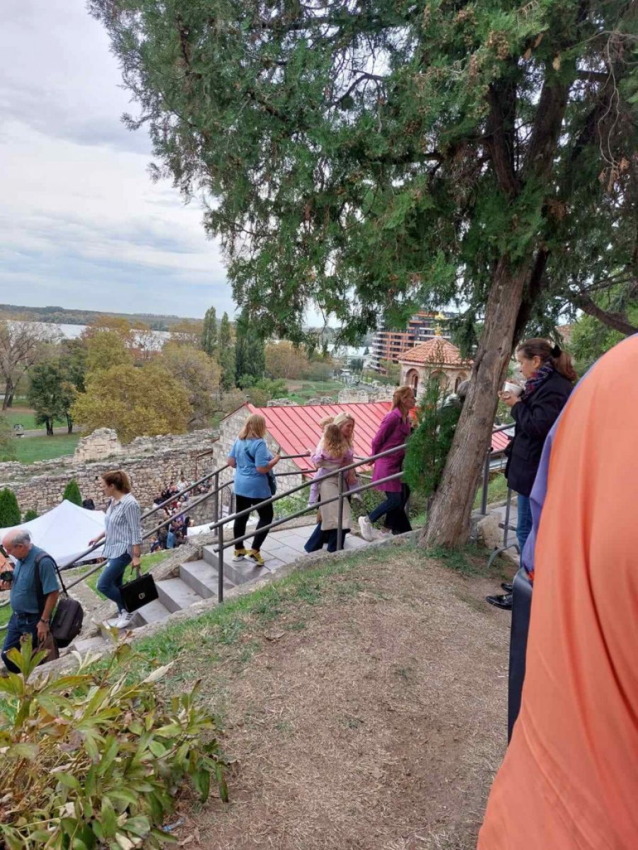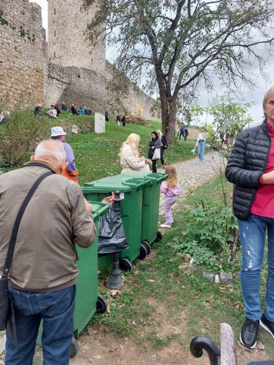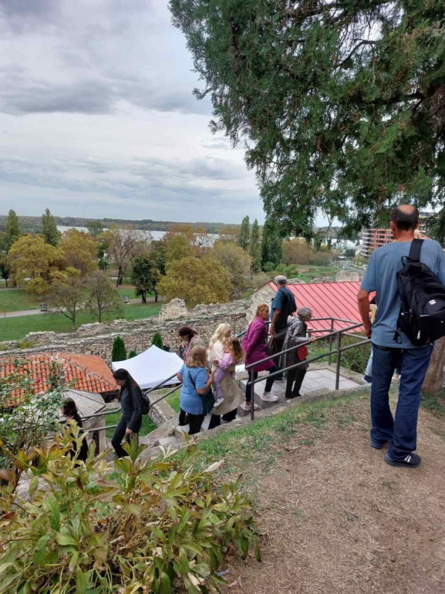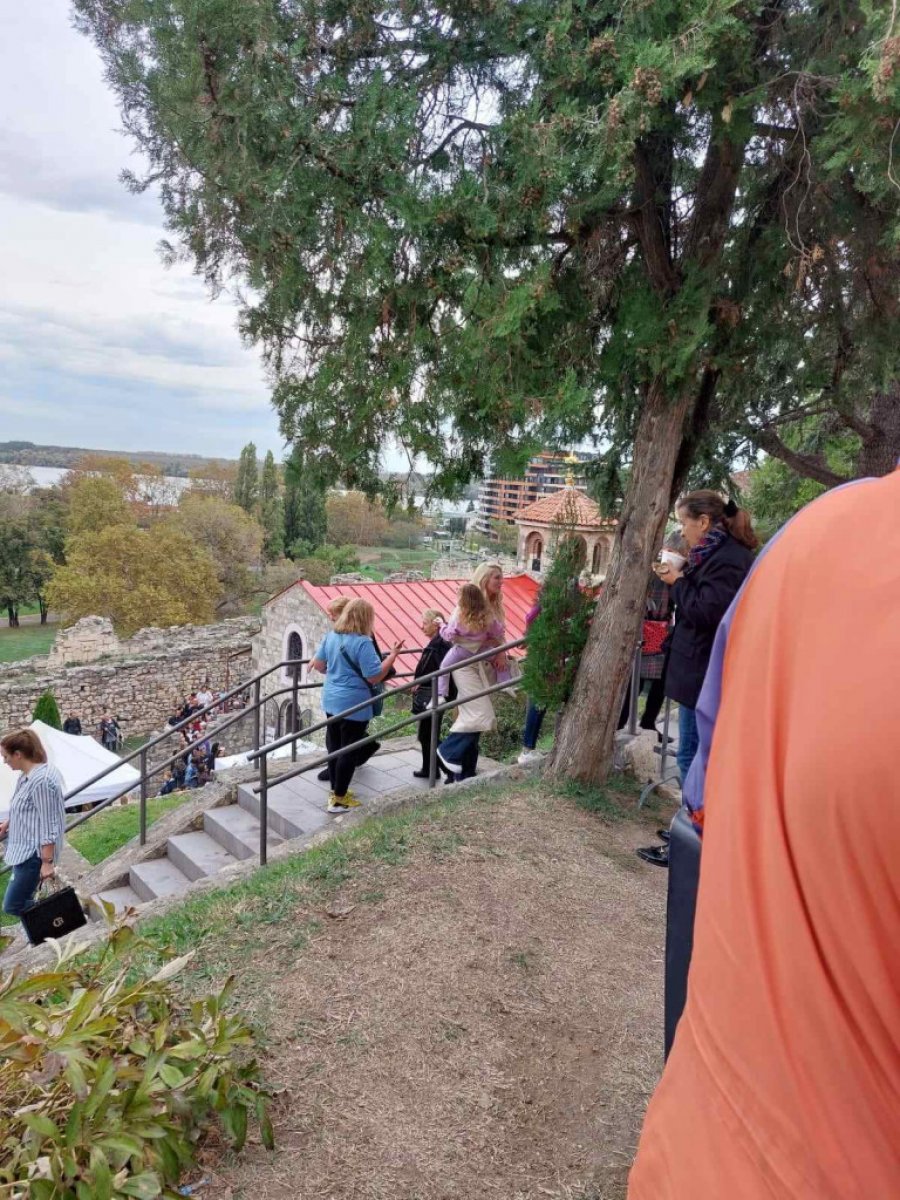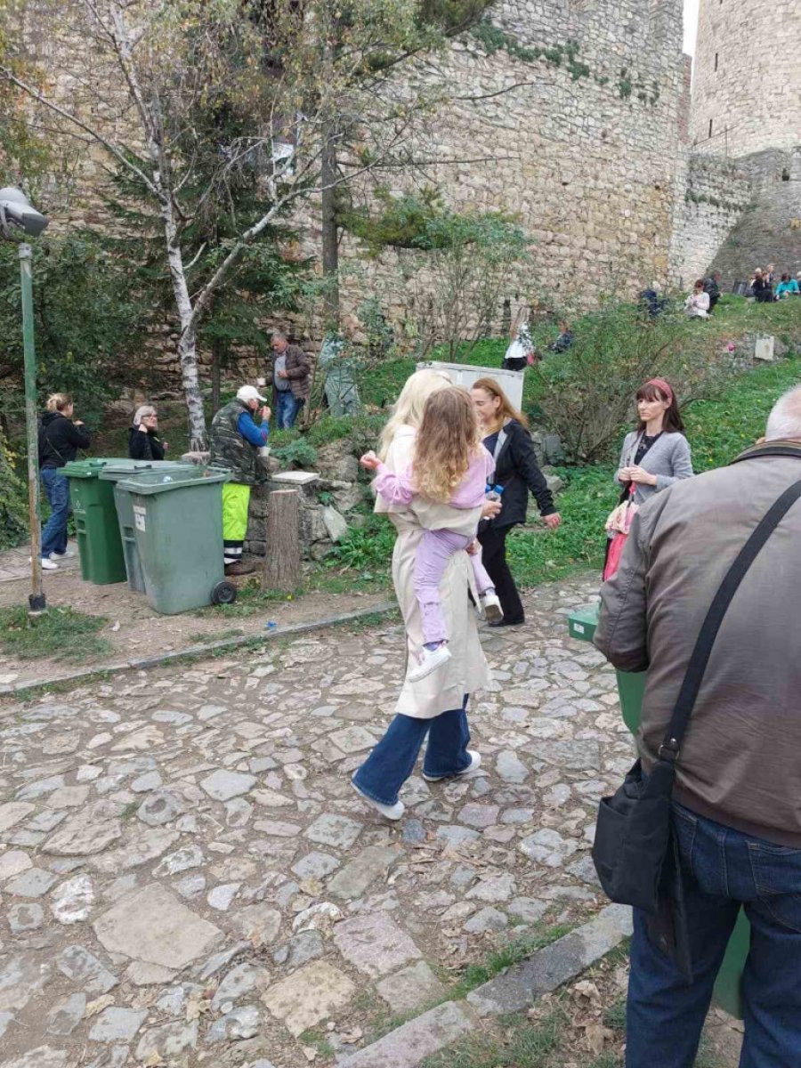 Nikolina je pogidla ćerku dok su se pele uz stepenice, kako bi što pre prošle kroz gužvu koja se danas tamo napravila. Posle su nastavile da šetaju i uživaju u današnjem toplom oktobarskom danu.
