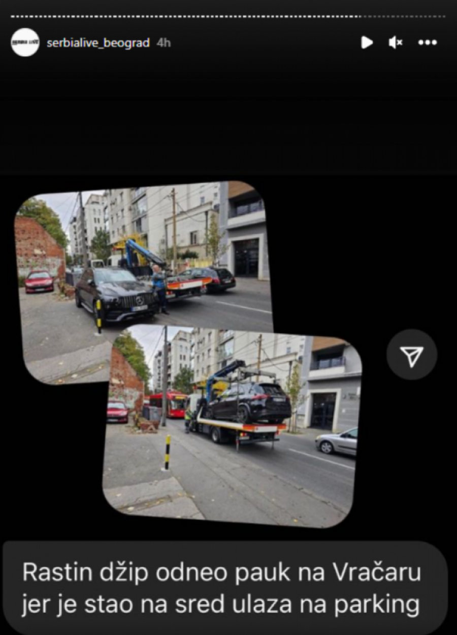 - Rastin džip odneo pauk na Vračaru, jer je stao nasred ulaza u parking - piše ispod ove objave.