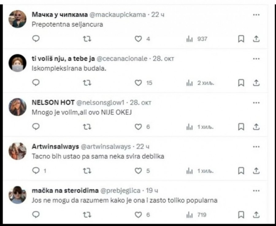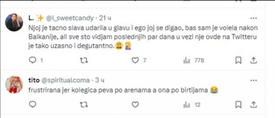 - "Mala mora da se spusti na zemlju", "Ovo se ne radi na mikrofonu, već se rešava u četiri oka", "Umislila se seljanka" - samo su neki od komentara koje je Tea dobila.