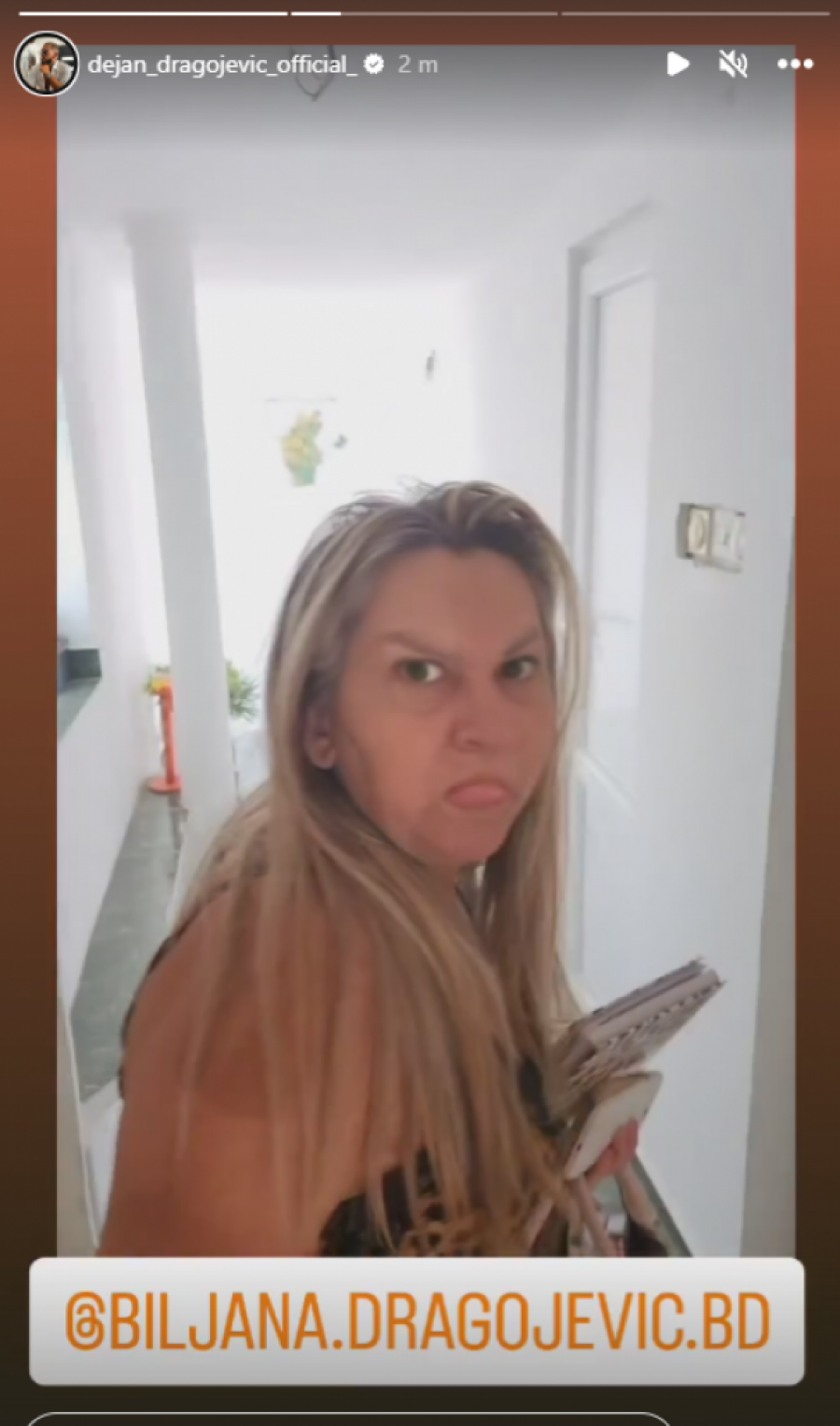 Međutim, već sledeći kadar je objasnio šta se desilo. Na društvenoj mreži Instagram bio je uključen filter za lice, te je Dejan hteo da napravi sa Biljanom skeč, gde su se komentari samo nizali jedan za drugim: