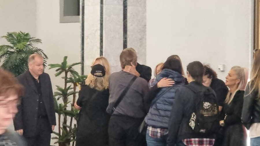 Mirko Kodić i njegova bivša supruga Jasna nemi su od bola. Silvija, druga supruga slavnog harmonikaša i njihova ćerka Rebeka stajale su pored Mirka. Rebeka nije mogla da sakrije tugu zbog preranog odlaska svog polubrata Aleksandra.