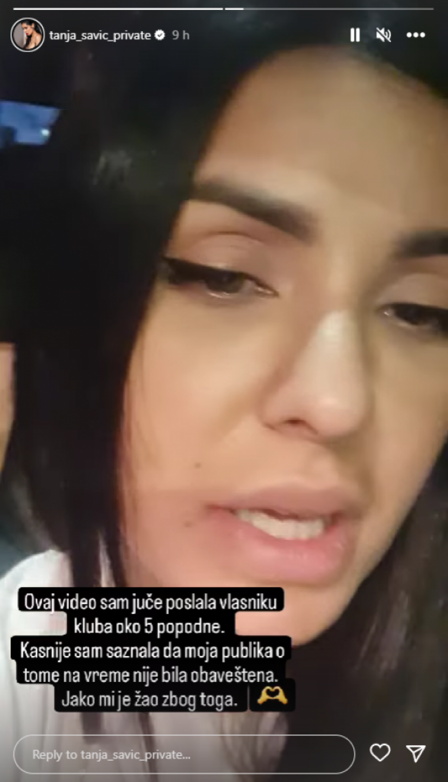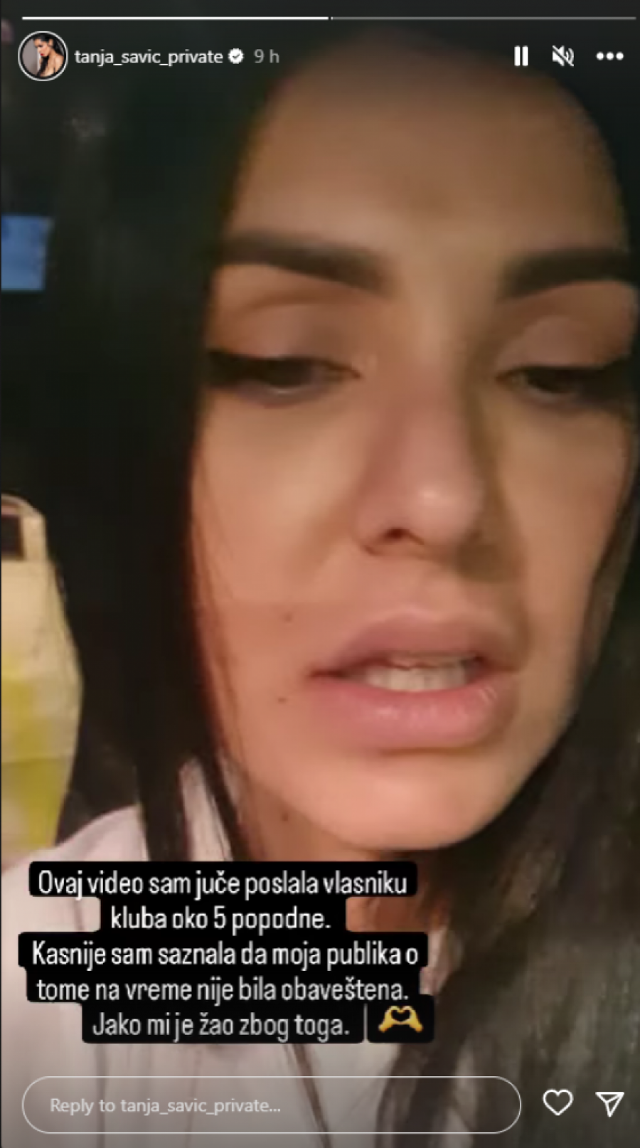 Pevačica Tanja Savić otkazala je nastupe jer se loše oseća, a samo par dana pre saopštenja da neće nastupati, sa sestrom Biljom posetila je manastir Tumane, gde se pomolila za svoje i zdravlje svih ukućana. Pevačica nije precizirala koji tačno zdravstveni problem ima, ali je priznala da ne može da se izbori sa visokom temperaturom i da joj je glas promukao, što se čuje i na samom klipu u kom se obraća svojim pratiocima na društvenoj mreži Instagram.