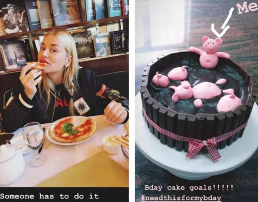 Ona je objavila selfi sa trenerom, a nakon toga je objavila i fotografiju na kojoj jede picu, kao i fotku torte.