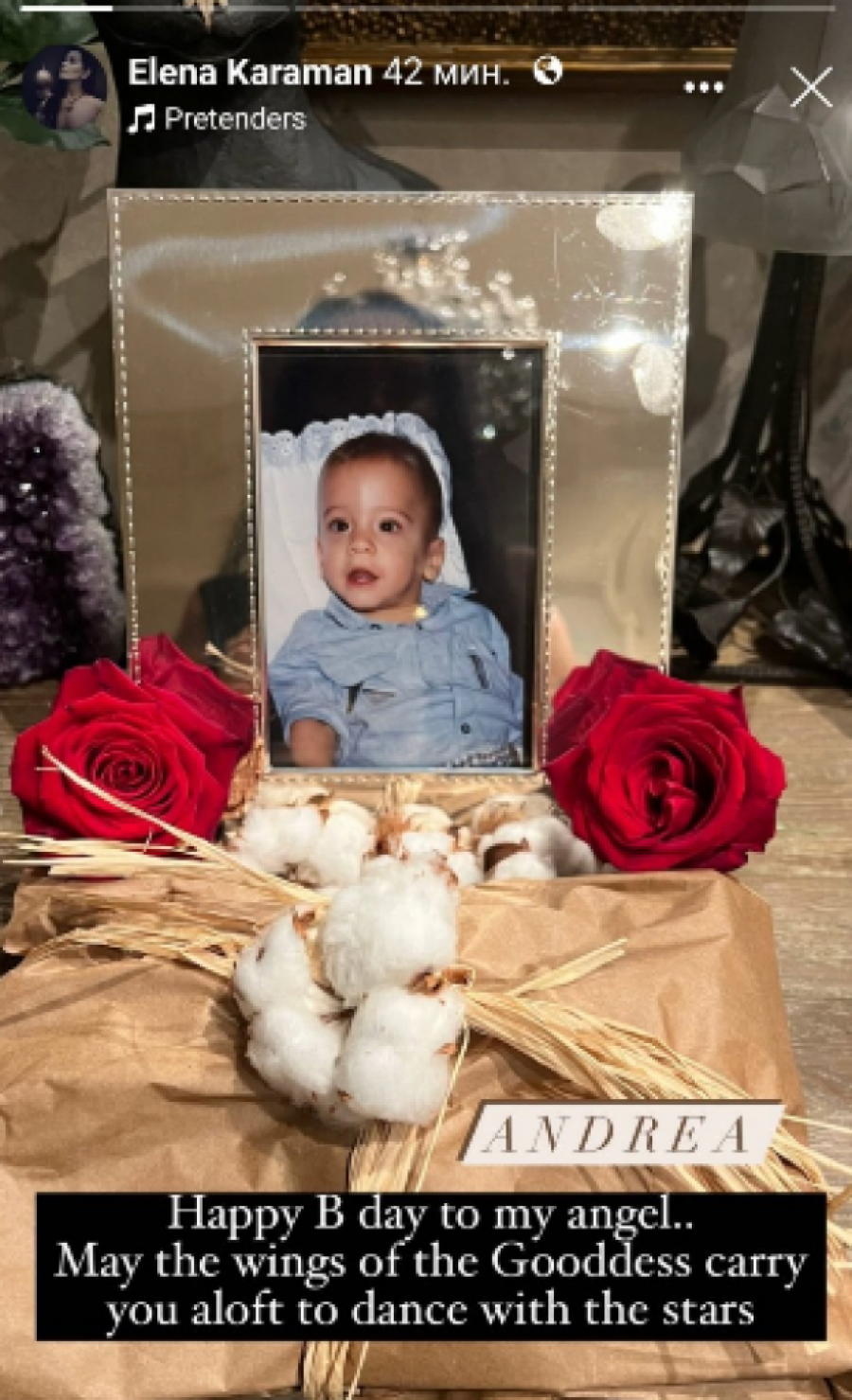 Elena je objavila stori, u kom je fotografisala deo porodičnog doma, u kom je posebno mesto izabrala gde je ostavila fotografiju svog preminulog sina, dok je bio beba. Pored su ostavljene dve crvene ruže, ali i još mnogo posebnih detalja, koji Eleni imaju veliko značenje.