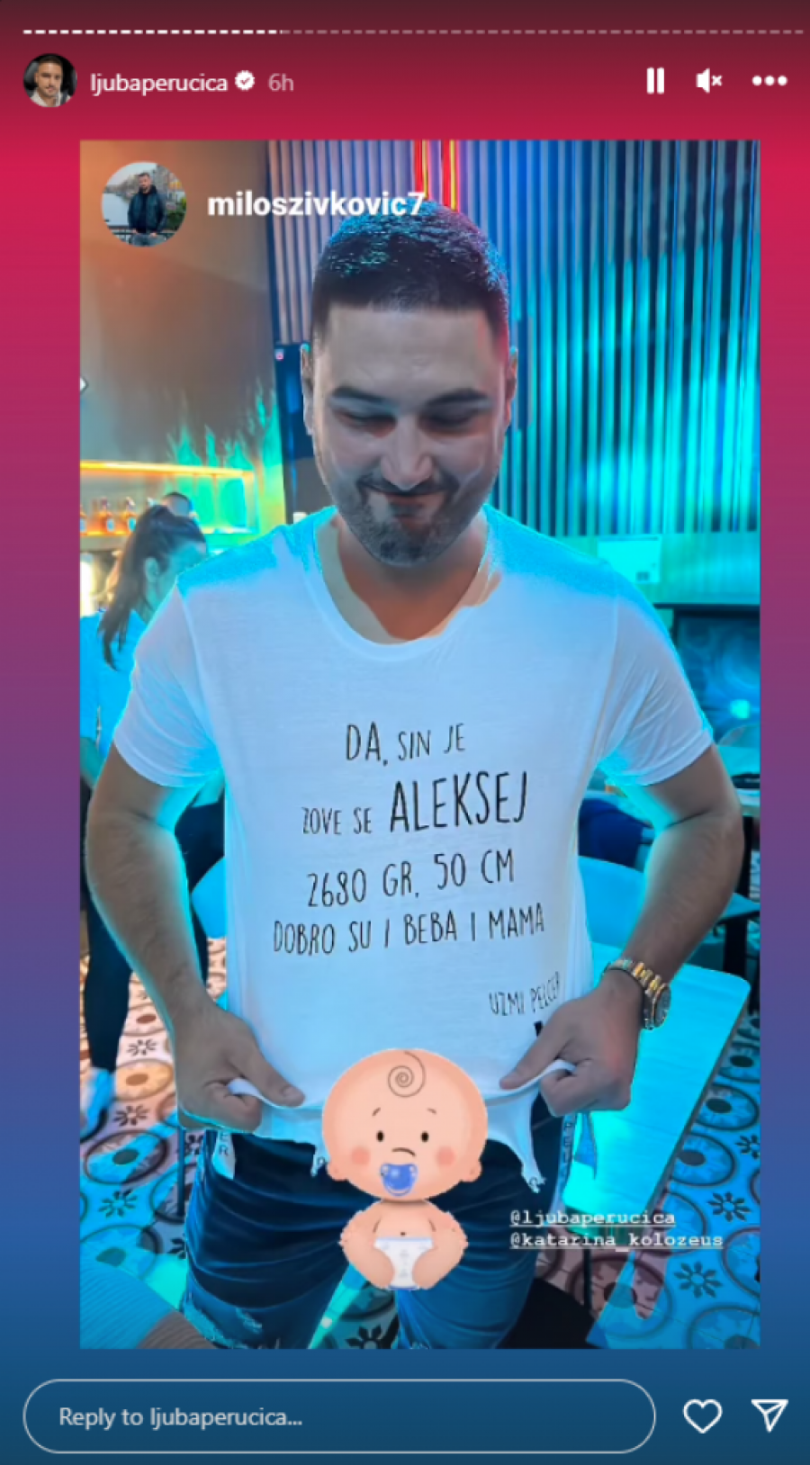 Ljuba Perućica postao je otaca njegovo emotivno slavlje povodom rođenja sina izazvalo je veliko interesovanje na društvenim mrežama. Naime, pevač je na svom Instagram profilu podelio video na kome se vidi kako plače od sreće dok gosti cepaju majice na kojima piše ime i detalji o novorođenom sinu.