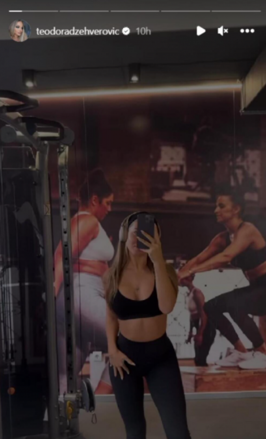 Pevačica Teodora Džehverović, poznata po svojoj aktivnosti na društvenim mrežama, ponovo je izazvala veliku pažnju svojih pratilaca objavom novog sadržaja. Naime, Džehvi je održala svoj redovan trening u teretani, a potom se pohvalila svojim izgledom u ogledalu. Njena pozamašna pozadina bila je u fokusu, što je verovatno bio način da istakne rezultate svog napornog rada u teretani. U uskim crnim helankama koje su se pripile uz njeno izvajano telo, Teodora je privukla pažnju svojih fanova koji nisu ostali imuni na ove izazovne kadrove.