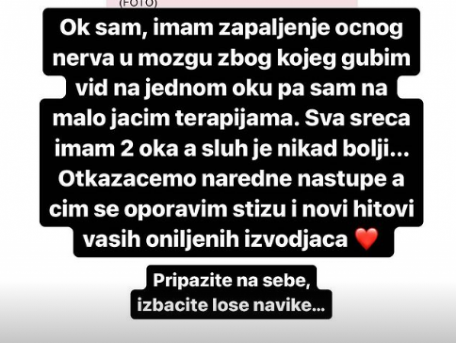 Heni otkrio da ima zapaljenje očnmog nerva zbog čega gubi vid na jednom oku!
