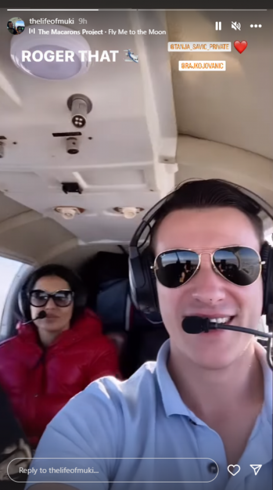 Pevačica Tanja Savić iznenadila je svoje fanove kada je na svom Instagram profilu objavila fotografiju sa svojim novim partnerom, pilotom Muhamedom Mukijem Bešićem. Par je u vezi već neko vreme, a on je sada podelio i snimak na kojem se vidi kako Tanju i dvojicu prijatelja vozi avionom.
