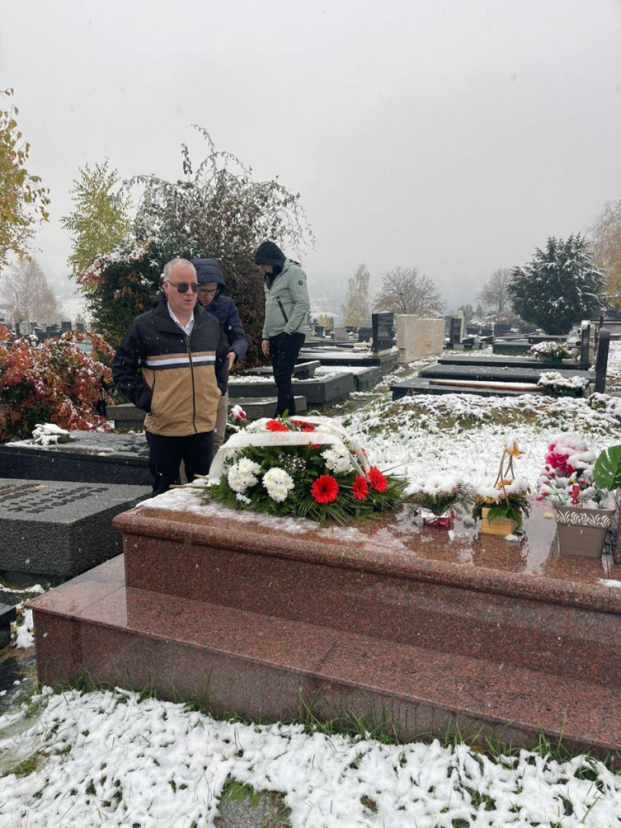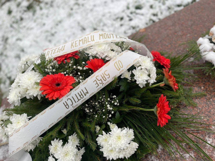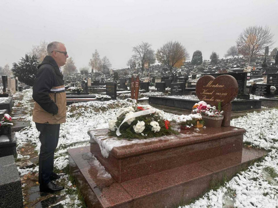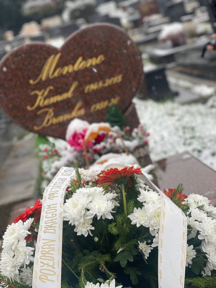 “Pozdrav dragom prijatelju Kemalu Montenu”, piše na vencu koje je Saša položio.