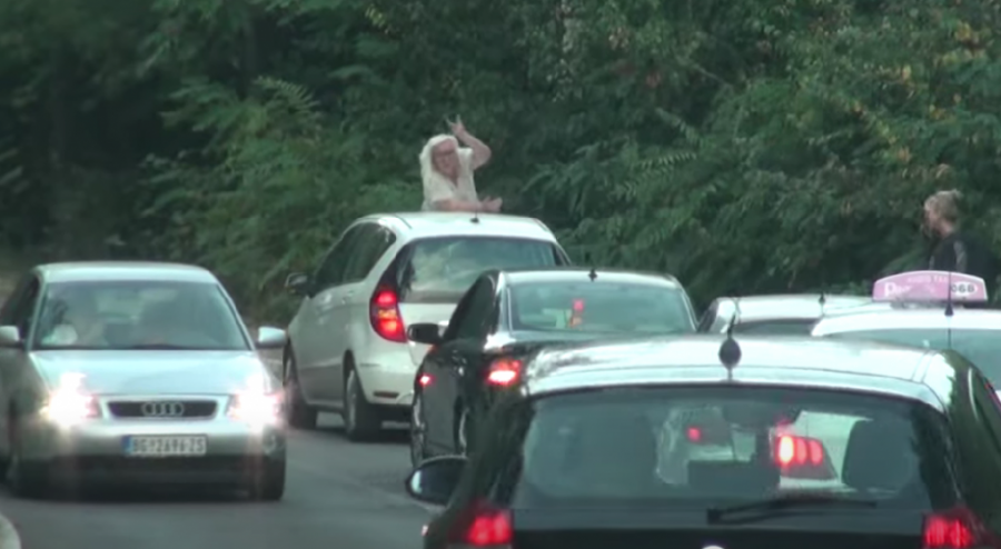 Ona se nakon toga popela na krov automobila, koji vozi njena prijateljica, što je izazvalo kolaps u saobraćaju. Pevačica se odlično zabavljala i nije skidala osmeh s lica, a iza njih se napravila kolona automobila i ljudi koji nisu mogli da veruju šta vide svojim očima.