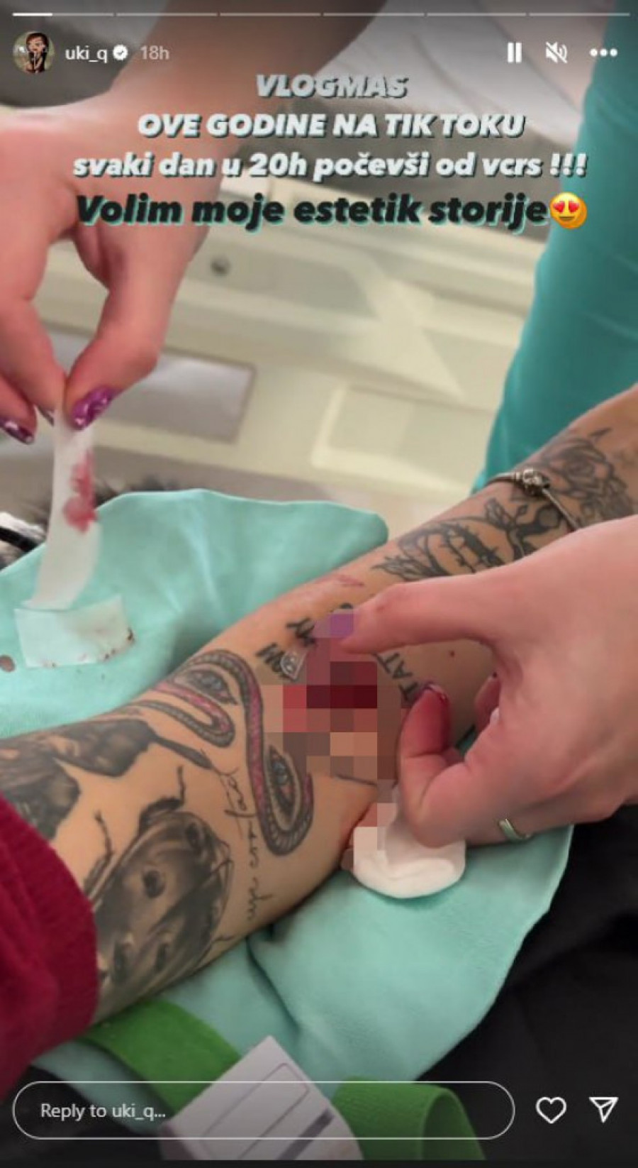 Naime, ona je objavila snimak, na kom se vidi kako joj medicinska sestra vadi iglu iz vene, dok krv šiklja na sve strane. Influenserka je bila lepo raspoložena, pa je na ovaj način objasnila fanovima da im je spremila zanimljiv kontent i da će je videti iz nekog drugog ugla.