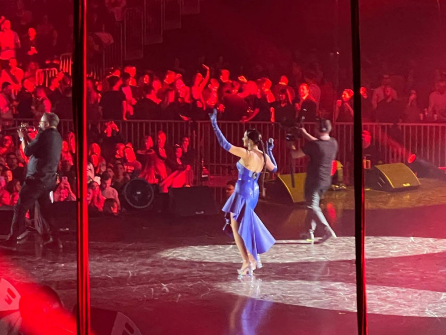 Drugi blok poceo je novom kožnom toaletom - ovaj put u plavoj boji i s potpisom mekvina. Grudi je stavila u prvi plan, a uska haljina pripojena uz telo je pokazala da je pevačica u top formi.