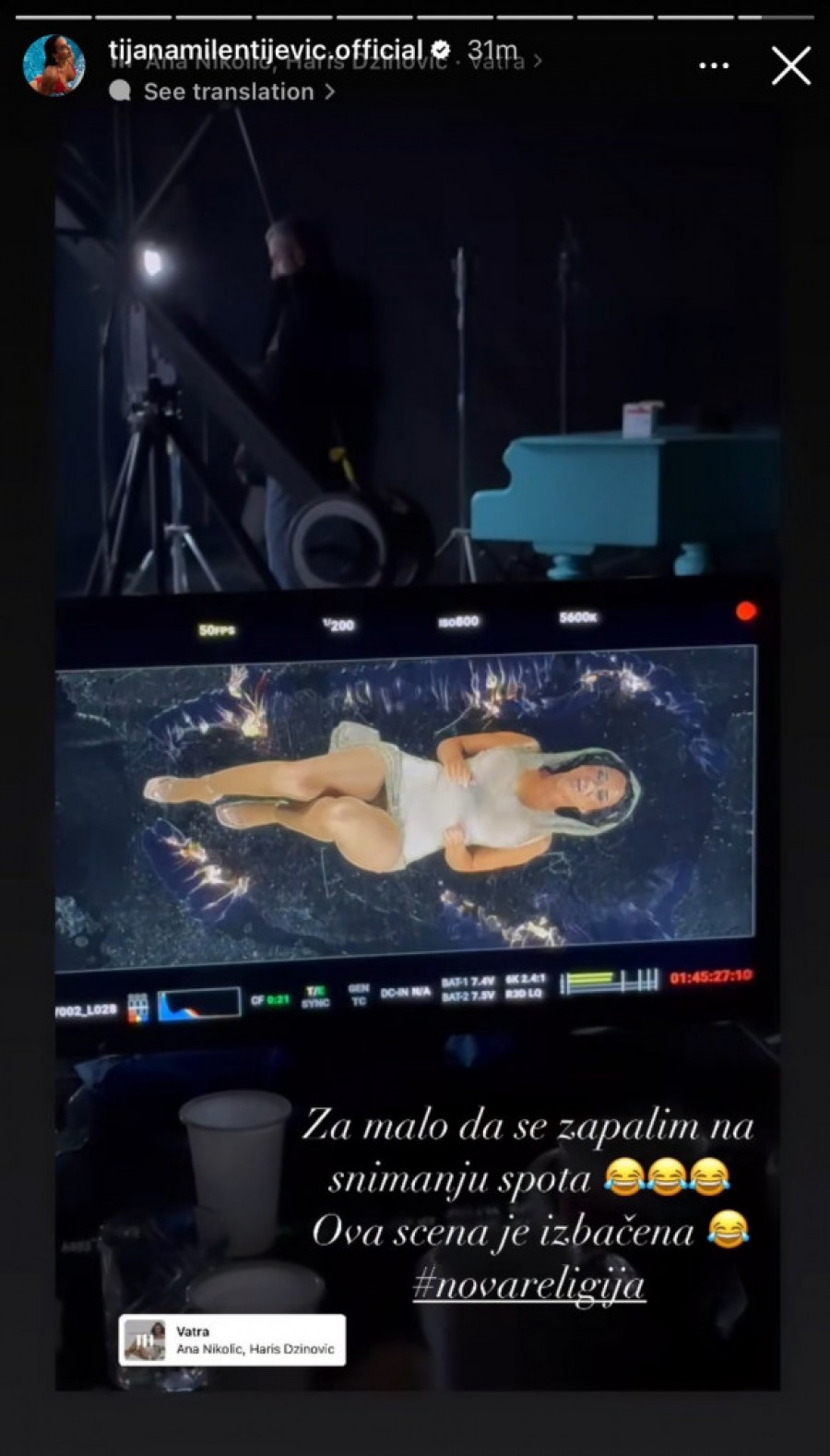 - Zamalo da se zapalim na snimanju spota. Ova scena je izbačena - napisala je Žena od Sultana na svom profilu na društvenoj mreži Instagram.
