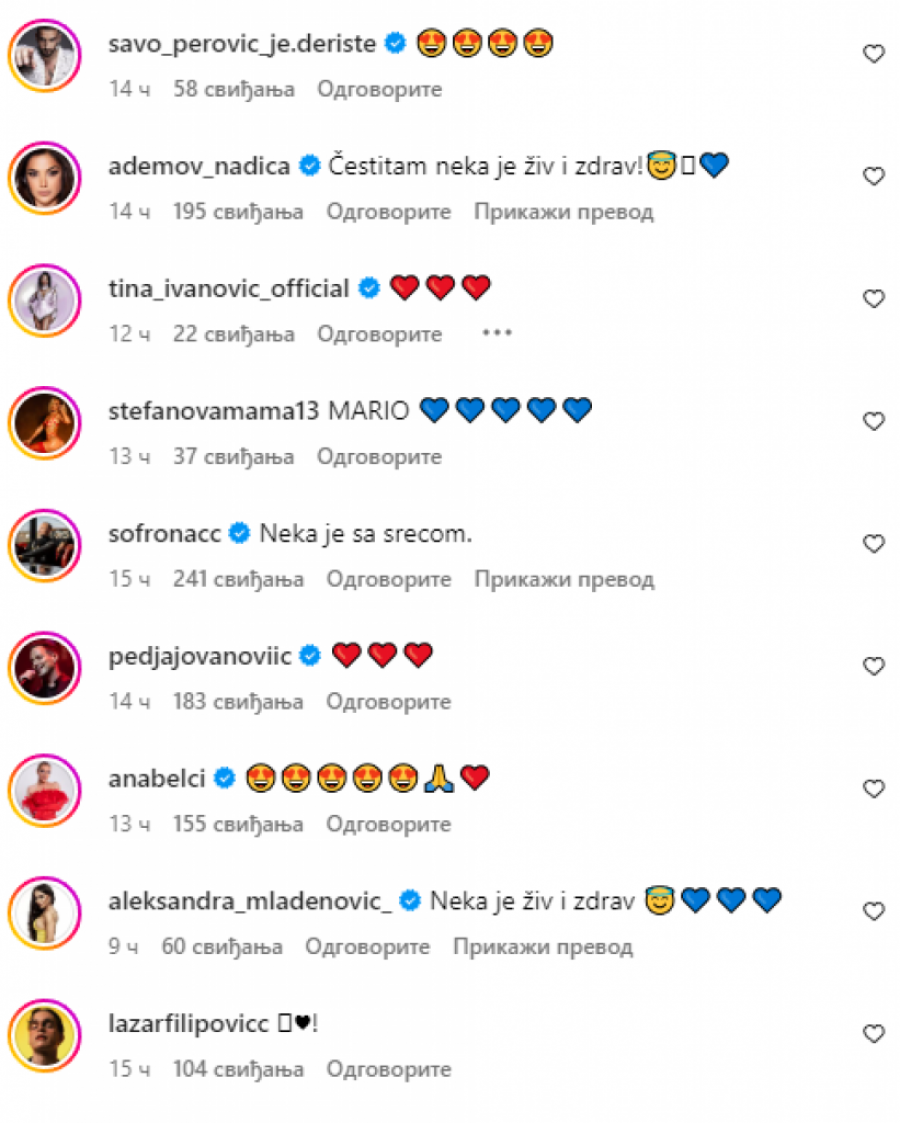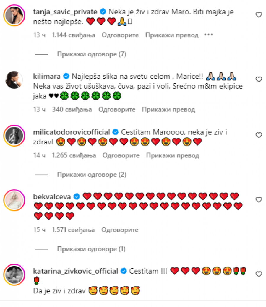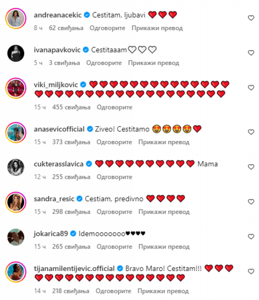 Mnoge kolege čestitale su Mariji na radosnim vestima ispod objave, što možete videti u galeriji ispod ovog teksta. Mnoge je zanimalo i da li će se oglasiti i pevačica Džejla Ramović.