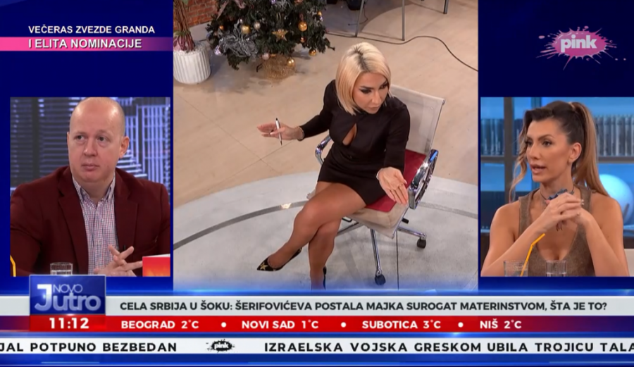 Popularna voditeljka Jovana Jeremić je u današnjoj emisiji "Novo jutro" posvetila segment pevačici Mariji Šerifović, koja je 2. decembra ove godine dobila dete uz pomoć surogat majke. Dok je voditeljka pričala o Mariji sa svojim gostima, kamera je više puta zabeležila njenu odevnu kombinaciju, koja je u prvi plan istakla njene noge, ali i dekolte.