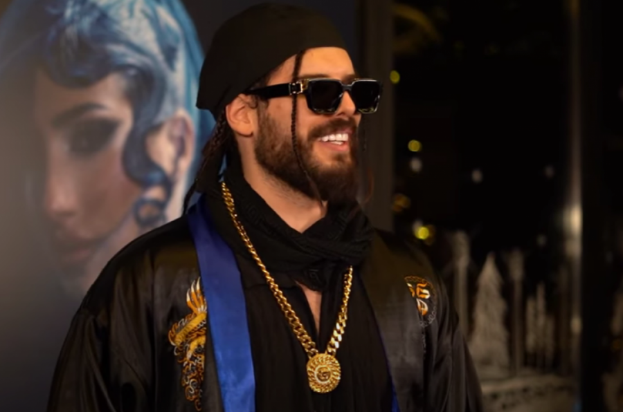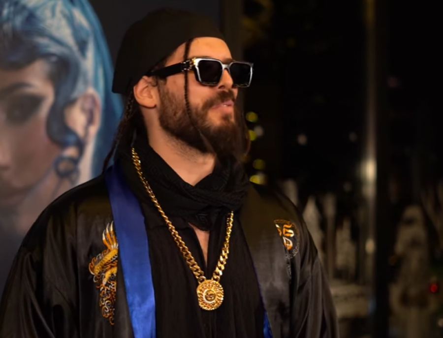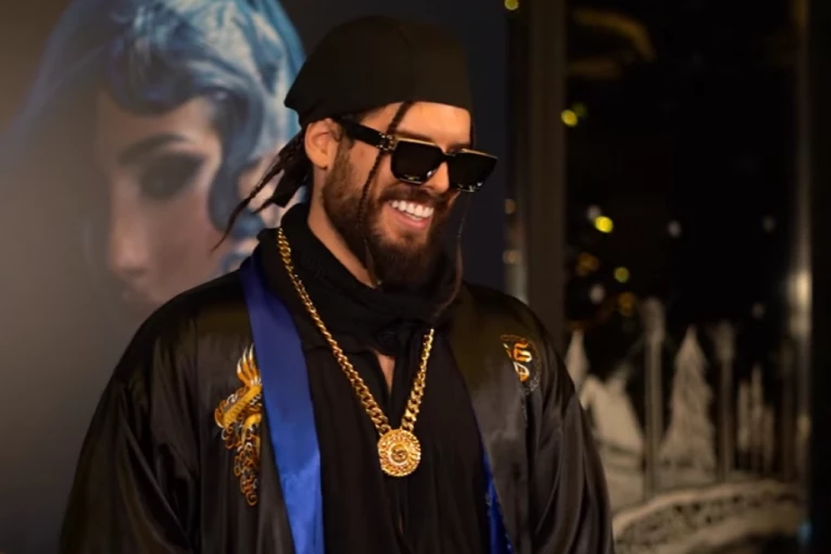 Ogroman lanac oko vrata, kimono, naočare za sunce, marama, sve smo to mogli da vidimo na Adamu na promociji.