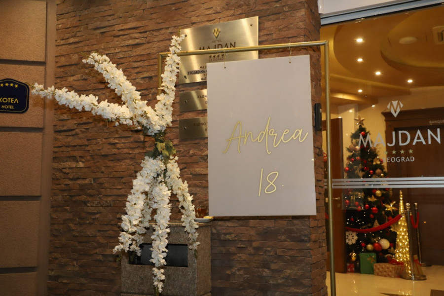 Na samom ulazu u restoran, goste je dočekala prelepa cvetna dekoracija, dok je na tabli bilo istaknuto ime slavljenice - "Andrea 18." Porodica Dačić se u jednom trenutku našla ispred objektiva fotoreportera, pozirajući sa osmehom na licu.