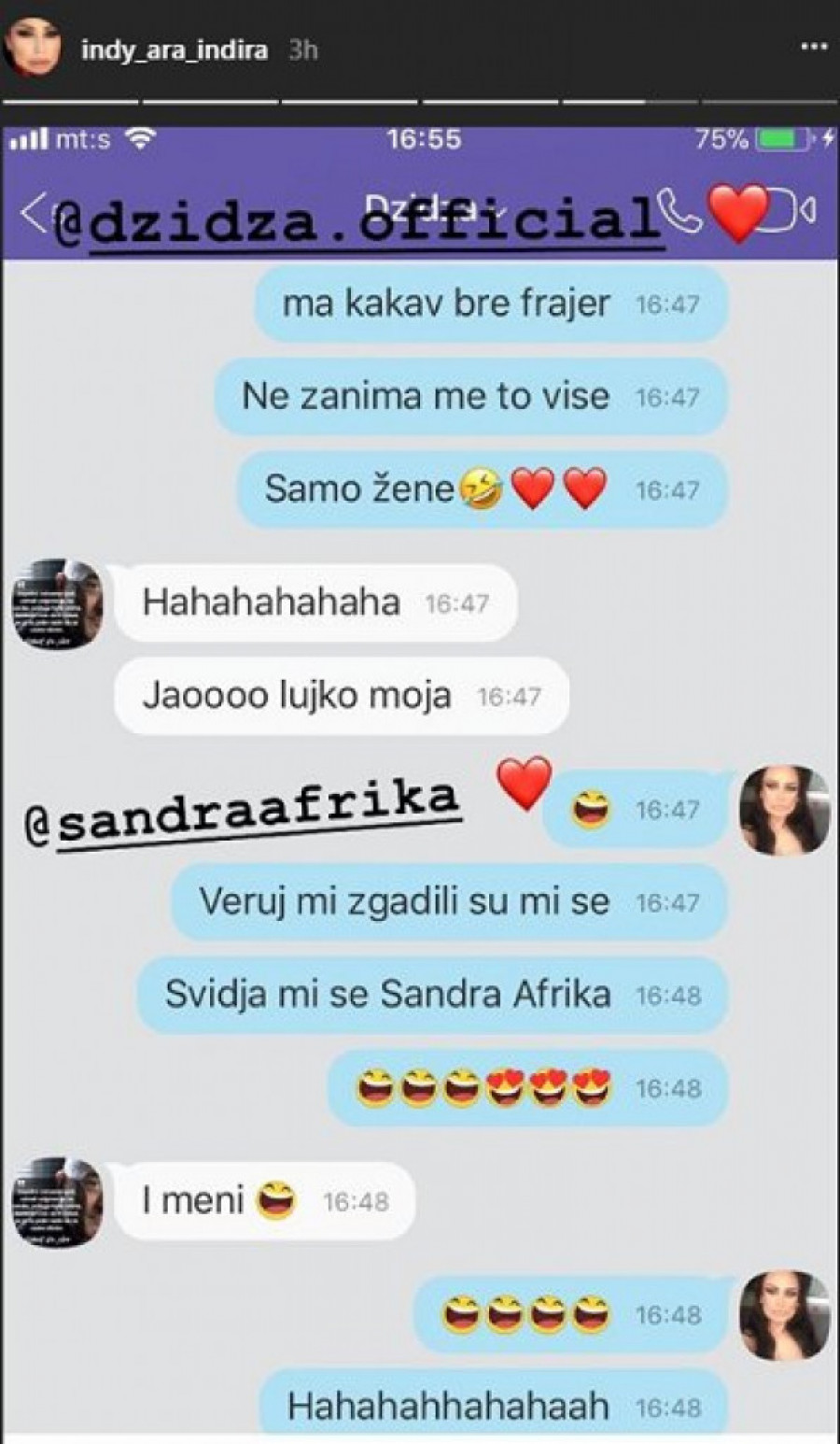 - Ma kakav bre frajer? Ne zanima me to više. Samo žene - piše Indi, dok joj Džidža odgovara.