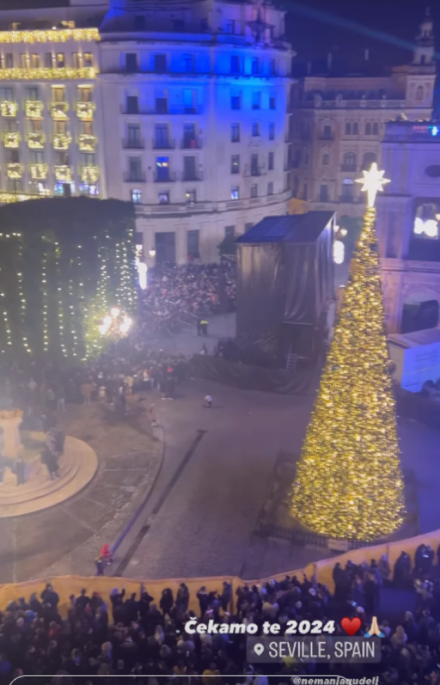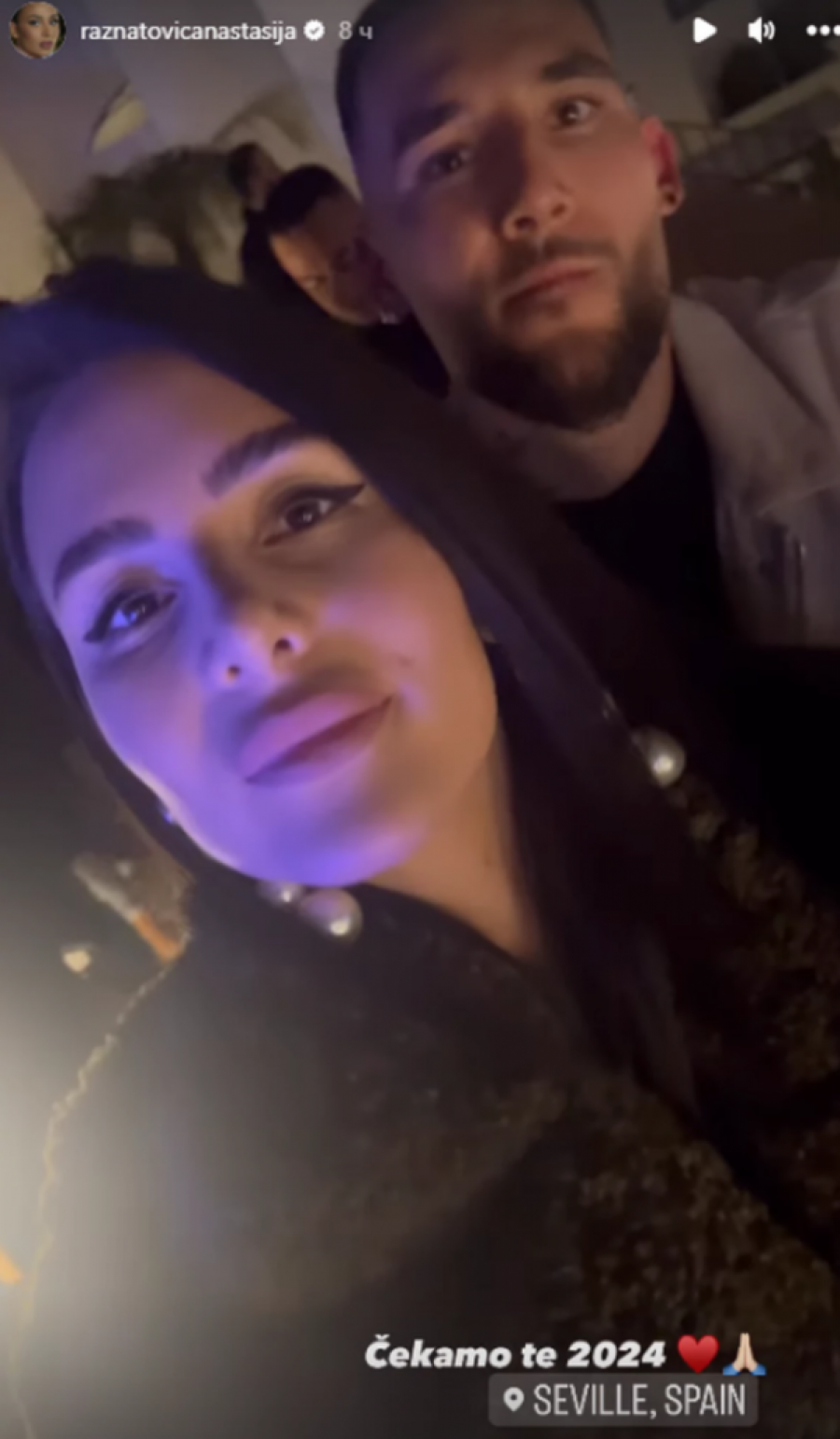 Anastasija Ražnatović i njen suprug, fudbaler Nemanja Gudelj, su sinoć proslavili Novu godinu na neobičan način. Umesto u restoranu ili klubu, par je odlučio da dočeka 2024. godinu na jednom od trgova u Sevilji. Anastasija je podelila ovaj poseban trenutak sa svojim pratiocima na Instagramu, objavivši snimak njihovog dočeka.