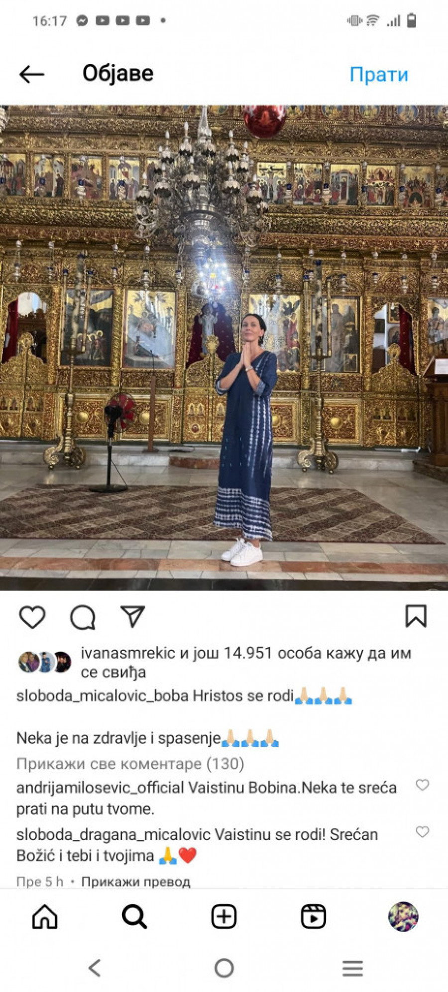 - Vaistinu, Bobina. Neka te sreća prati na putu tvome - poručio joj je prijaltelj i kolega Andrija Milošević, dok je Milena Vasić poslala emotikone koji označavaju molitvu.