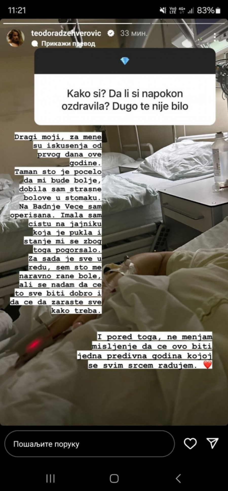 Pevačica Teodora Džehverović se oglasila iz bolnice!