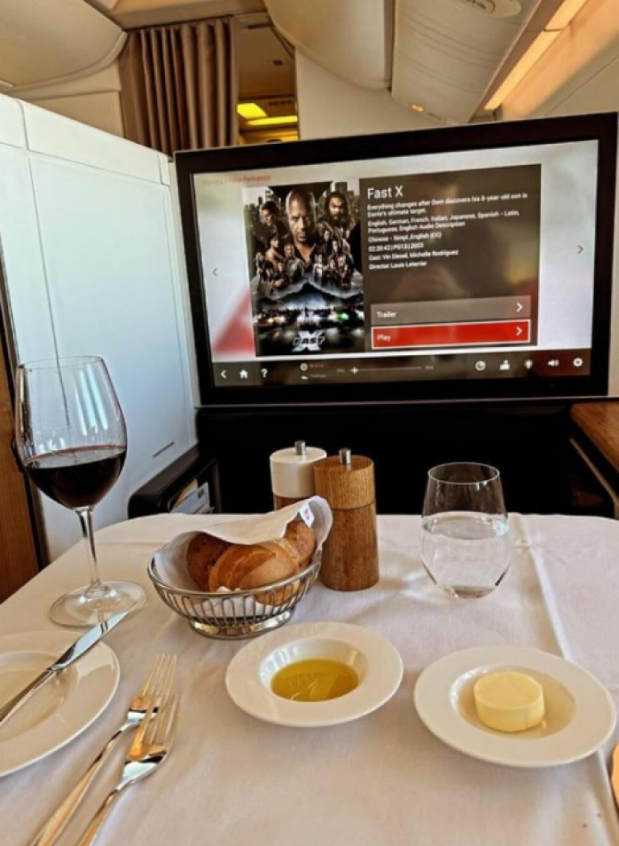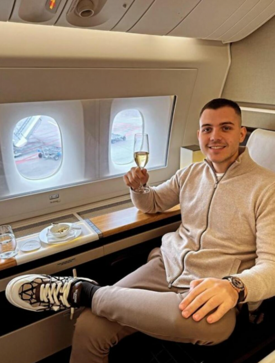 Nedavno je izazvao pažnju objavama iz privatnog aviona, gde je uživao u šampanjcu, ručku i filmovima.