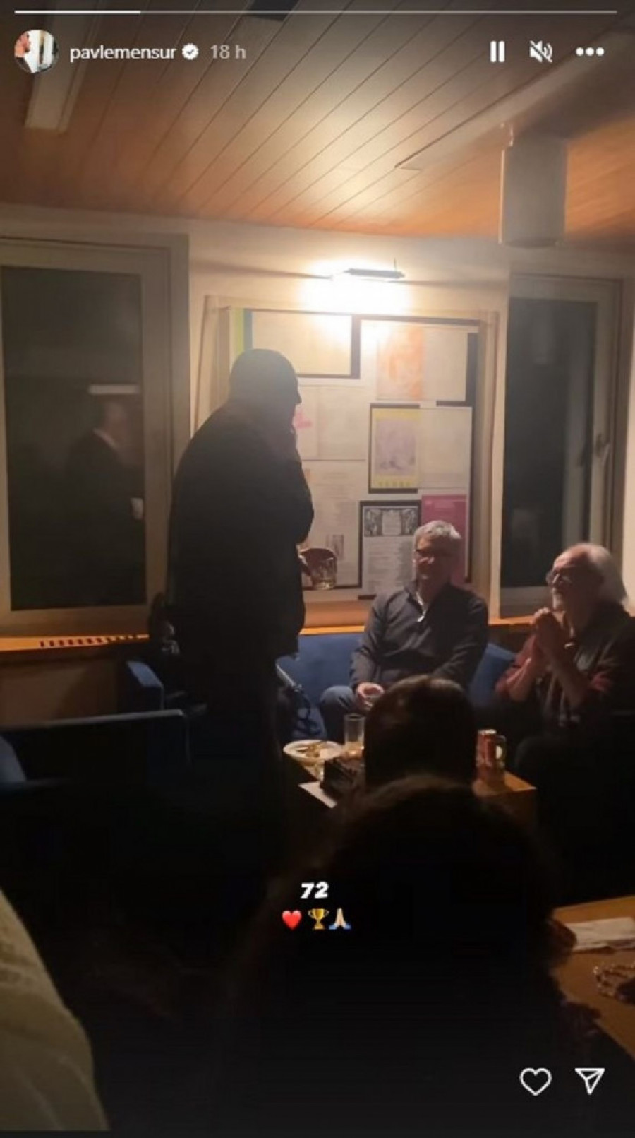 Na snimku koji je objavio njegov sin Pavle Mensur na društvenim mrežama, može se videti kako mu aplaudiraju i pevaju rođendansku pesmu. Glumac nije skidao osmeh sa lica, a ono među gostima je bila i Anita, supruga pokojnog Lauševića.