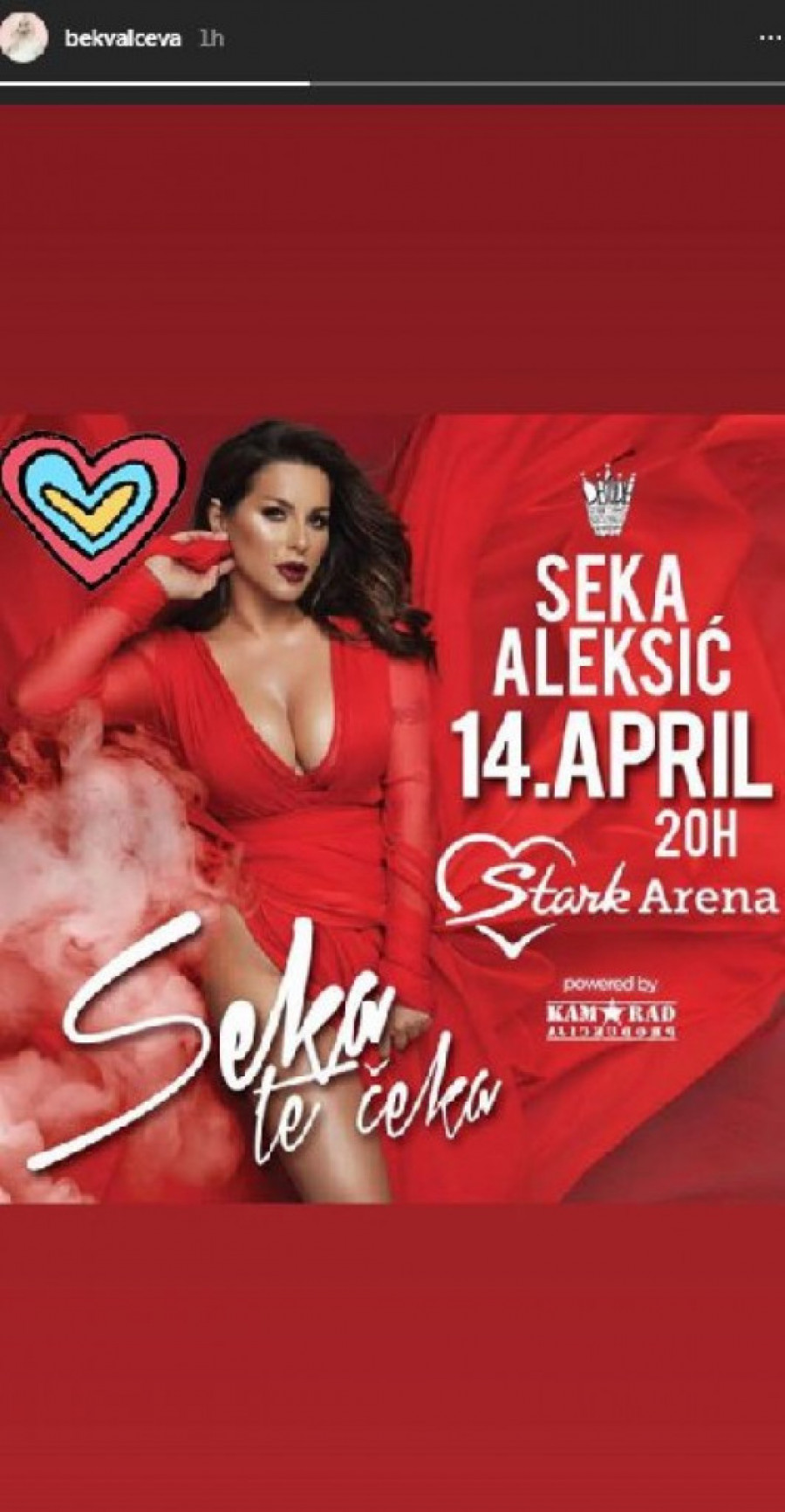 Naime, Seku je sada podržala i Nataša Bekvalac koja je svojom objavom Sekine fotogrfije mnoge iznenadila. A da li će panonska barbika doći na ovaj koncert definitivno nije poznato, s obzirom na to da se nedavno porodila.