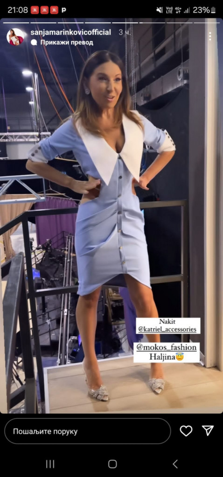 Voditeljka Pink televizije Sanja Marinković došla je na snimanje emisije u izazovnom izdanju, te se pričalo da ispod zanosne haljine koju je obukla nije imala donji veš! Naime, Sanja je rešila da pokaže koliko je vitka, pa je izabrala odevnu kombinaciju koju retko koja žena može da obuče, s obzirom na to je skroz pripijena uz telo.