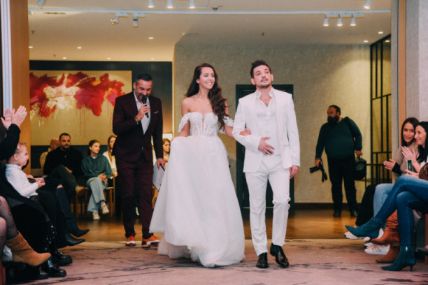 Glumački par odlično se snašao u ulozi mladenaca, a Ivana je blistala u vamp modelima venčanica koje je ovom prilikom predstavila.