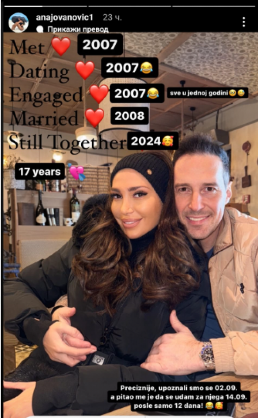 - Preciznije, upoznali smo se 02. 09. a pitao me je da se udam za njega 14. 09. posle samo 12 dana - napisala je Ana na Instagram storiju.