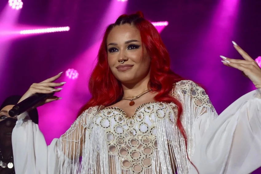 Na Tviteru je nedavno osvanula fotografija koju je jedan korisnik podelio, a koja prikazuje pevačicu u ljubičastim helankama, iz kojih viri deo tetovaže na donjem stomaku u obliku "rogova".
