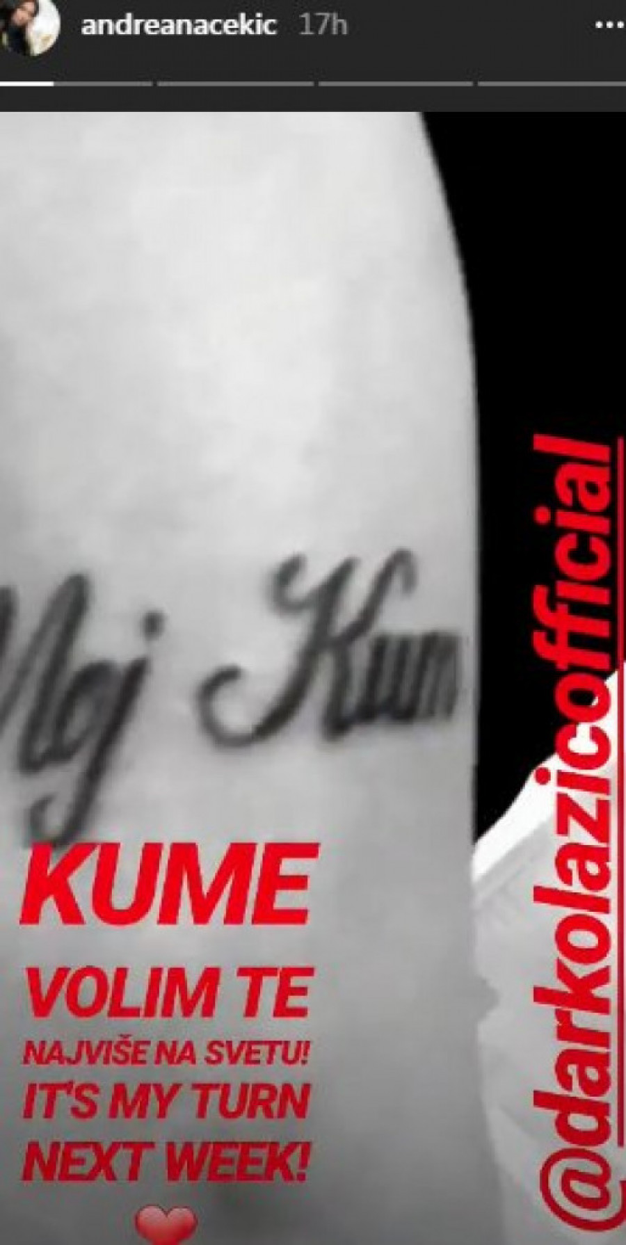 Foto: instagram.com/andreanacekicDa li će ona zaista posvetiti jednu tetovažu svom kumu, ostaje nam da vidimo.