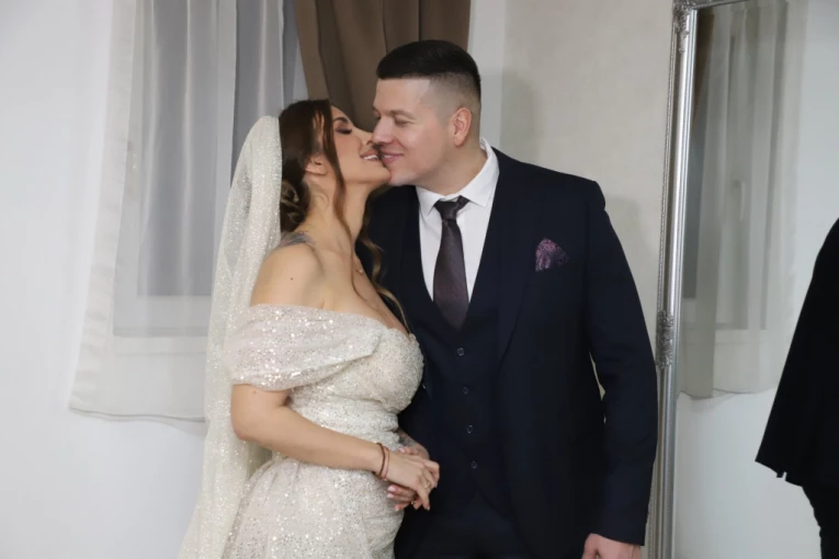 Jelena Radanović je, inače, za svadbu ponela dekoltiranu venčanicu, koja joj je sjajno pristajala, a Sloba i ona bili su presrećni zbog svadbenog veselja.