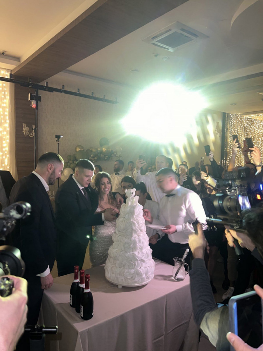 Pevač Sloba Radanović i njegova supruga Jelena napravili su svadbu juče u jednom beogradskom restoranu, a nakon zvaničnod dela programa i opšteg narodnog veselja, usledilo je i to da se iseče torta. Mladenci su zajedno uzeli nož da iseku prvo parče, a na vrhu poslastice je bio beli medved koji je zvanicama bio najslađi, pa su ga fotografisali i objavljivali na društvene mreže.