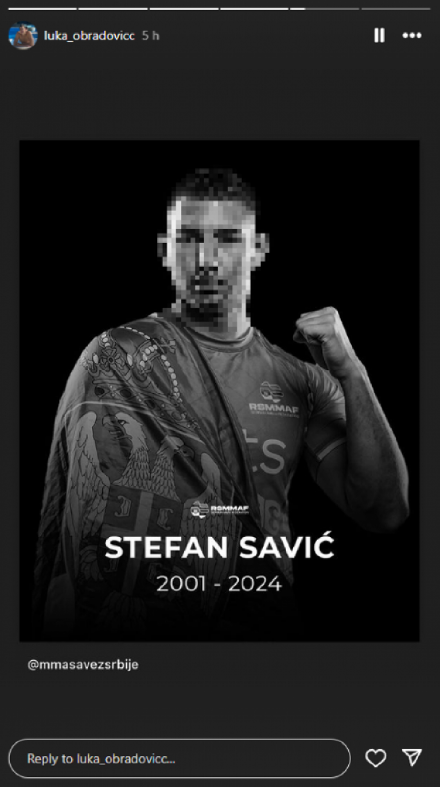 Inače, poznato je da se i Luka bavi MMA borilačkim veštinama, s toga zbog tragedije kolege, doneo je odluku da video materijal koji je spremio za svoje pratioce odloži.
