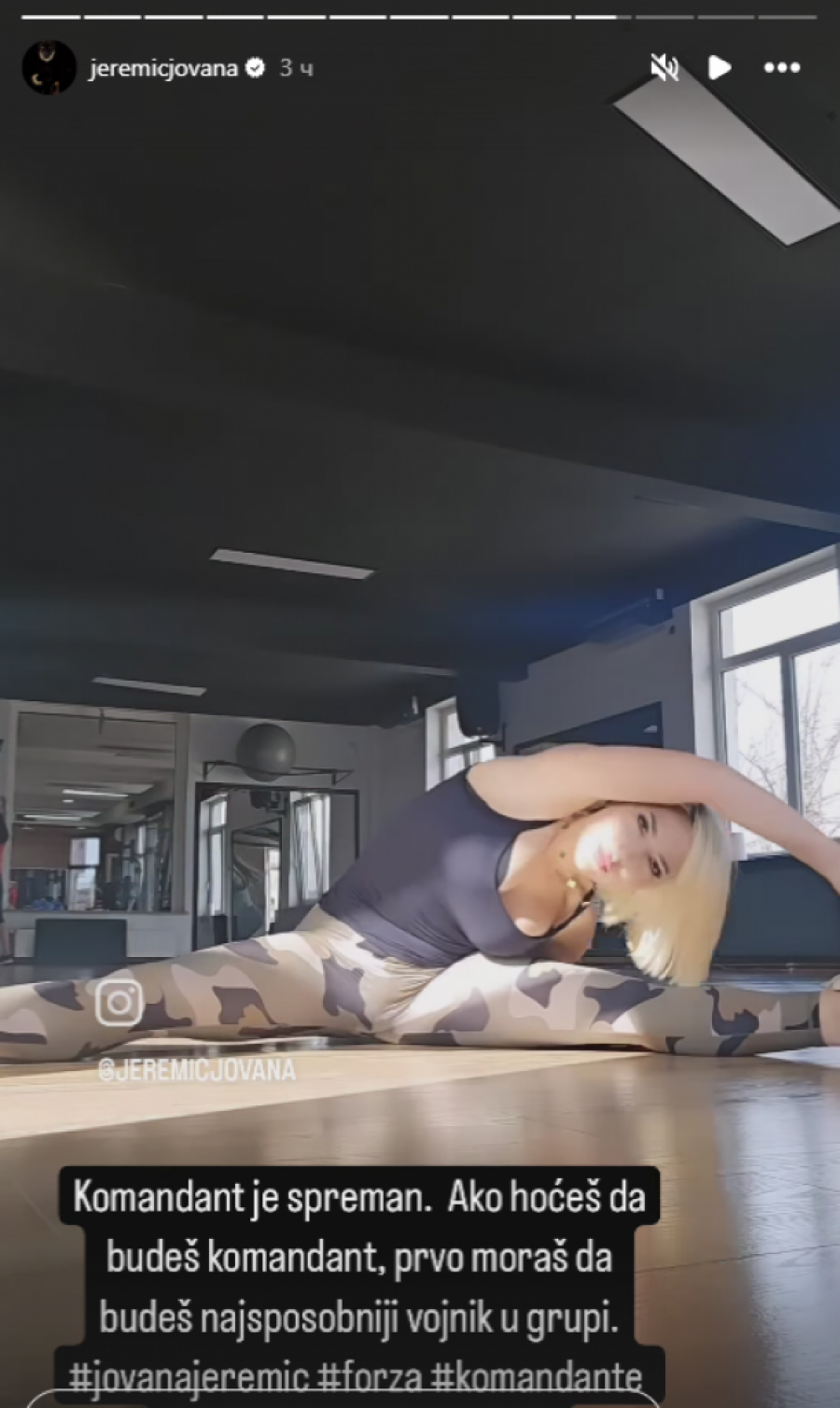 - Komandant je spreman. Ako hoćeš da budeš komandant, prvo moraš da budeš najsposobniji vojnik u grupi - napisala je Jovana.