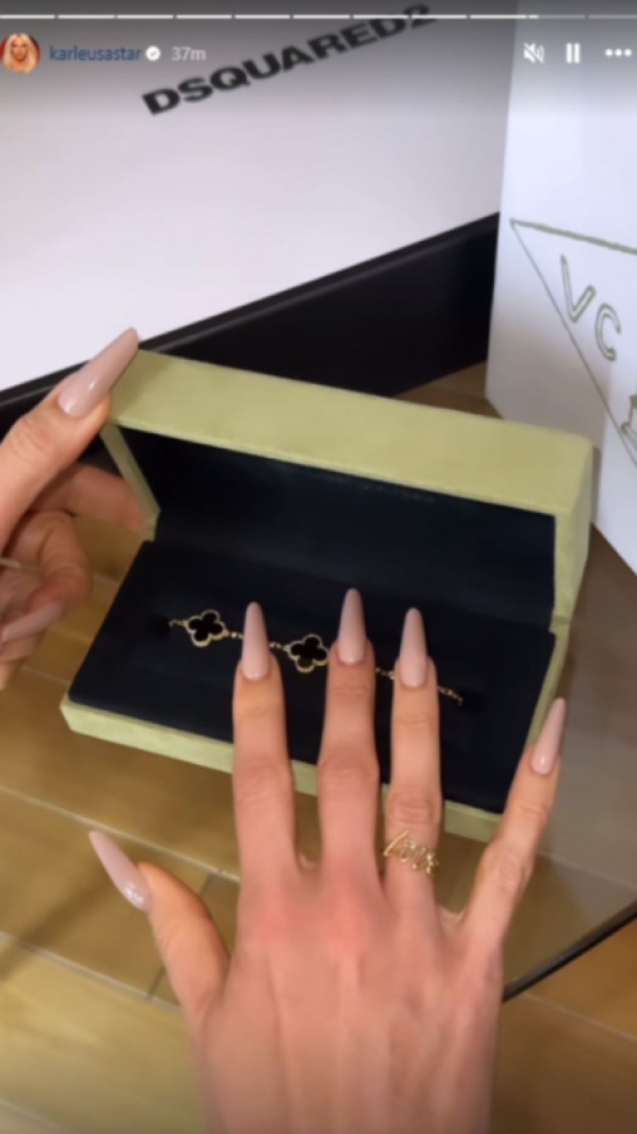 Na Osmi mart, Jelena Karleuša se oglasila na društvenim mrežama i podelila fotografiju svoje ruke. Pored negovane ženske šake, primetan je i skupocen nakit čija je ukupna cena skoro 17.000 evra. Karleuša je ponela "Cartier" prsten vredan do 600 evra, kao i narukvicu iz iste juvelirnice, iz kolekcije "Ljubav", za koju je izdvojila čak osam hiljada evra. Tu su još i komadi brenda "Van Cleef & Arpels", koji su je koštali takođe osam hiljada evra. Ona je na samo na ruci ponela preko 2.006.000 dinara.