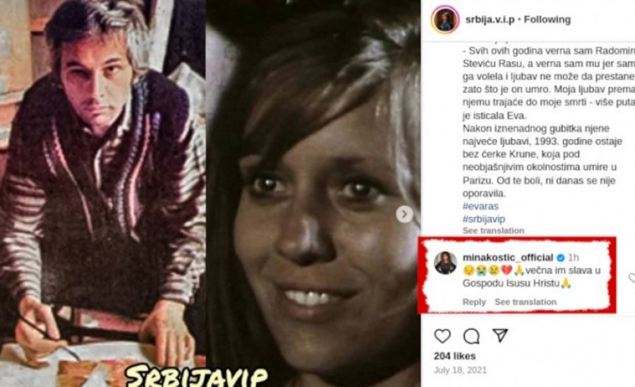 Pevačica Mina Kostić komentarisala je na društvenim mrežama fotografiju naše proslavljene glumice Eve Ras na kojoj je sa pokojnim suprugom Radomirom Stevićem Rasom, pa je napisala komentar koji je mnoge šokirao! Naime, Mina je po svemu sudeći zaboravila da je glumica Eva Ras još živa, pa je svojim komentarom napravila skandal o kom se i dalje priča.