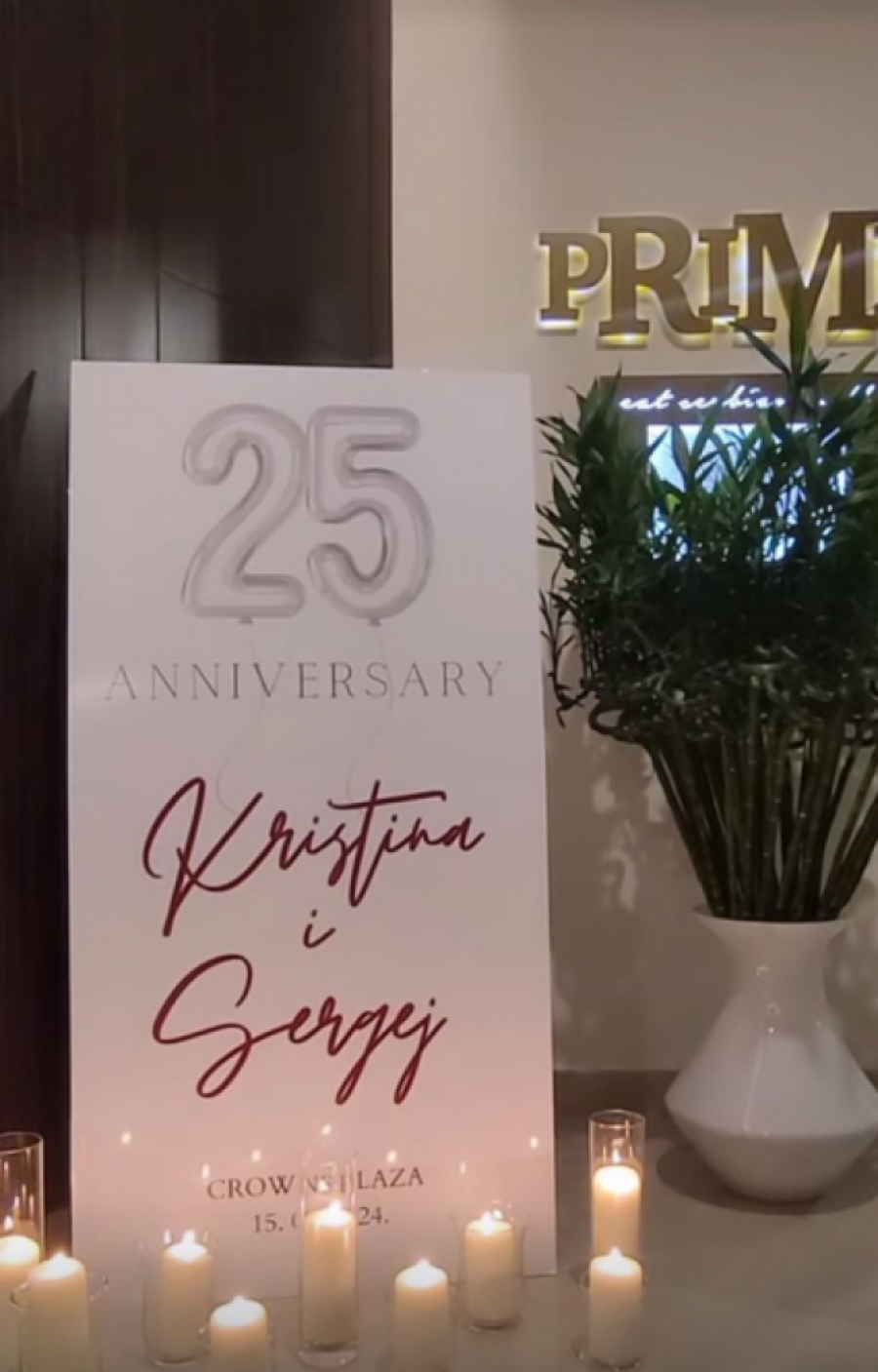 Popularni pevač Sergej Ćetković je 25 godina u braku sa svojom suprugom Kristinom i važe za jedan od najskladnijih parova na estradnom nebu. Ovim povodom organizovali su posebnu proslavu u jednom prestižnom beogradskom hotelu, te organizovali posebne dekoratere, koji su učinili ovaj događaj još posebnijim.