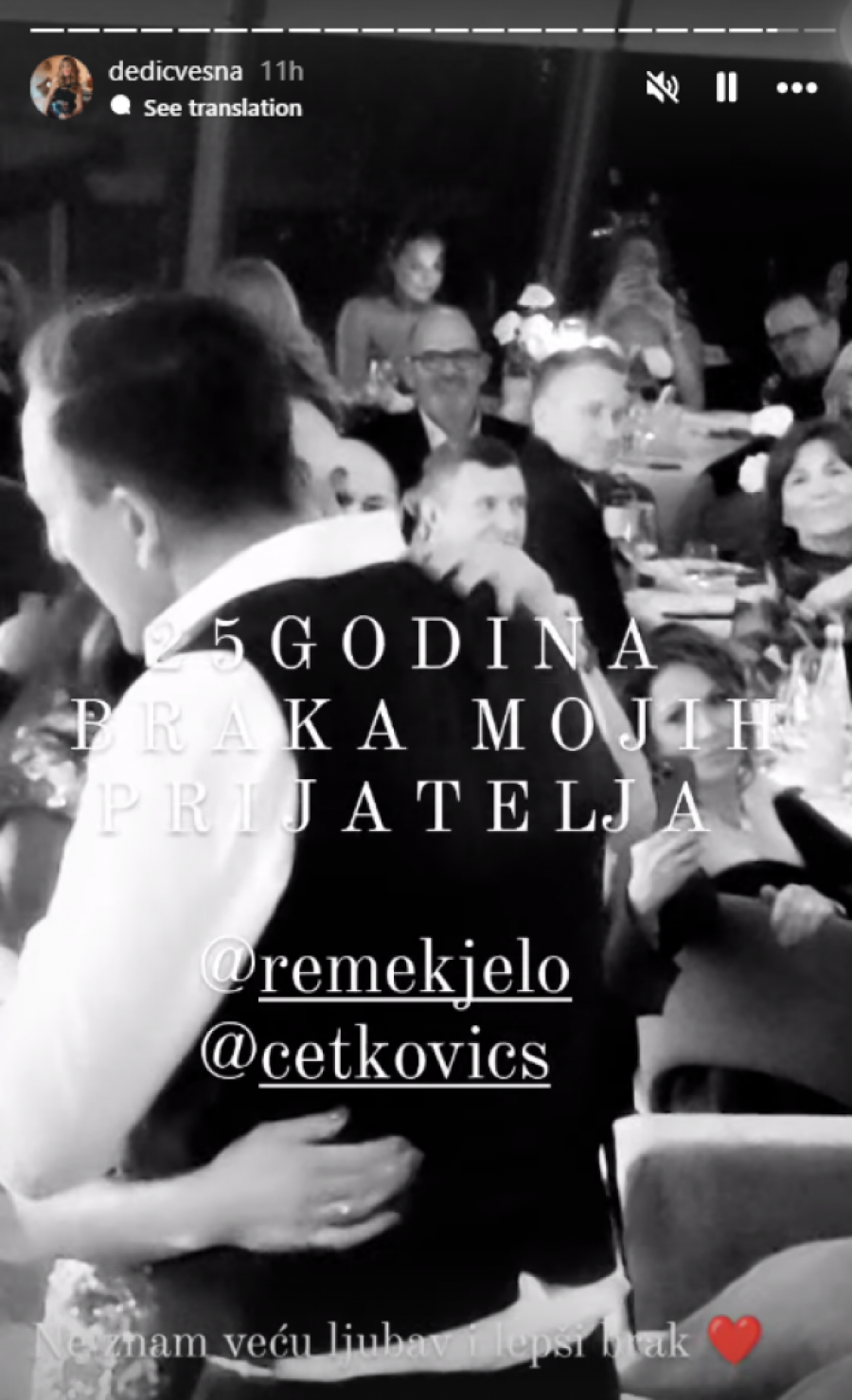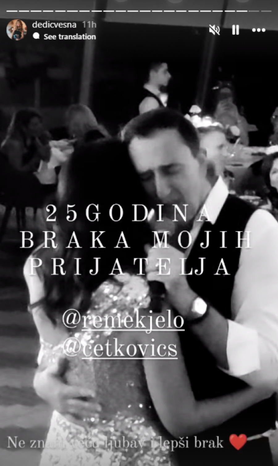 - 25 godina braka mojih prijatelja. Ne znam veću ljubav i lepši brak - napisala je Vesna preko objave.