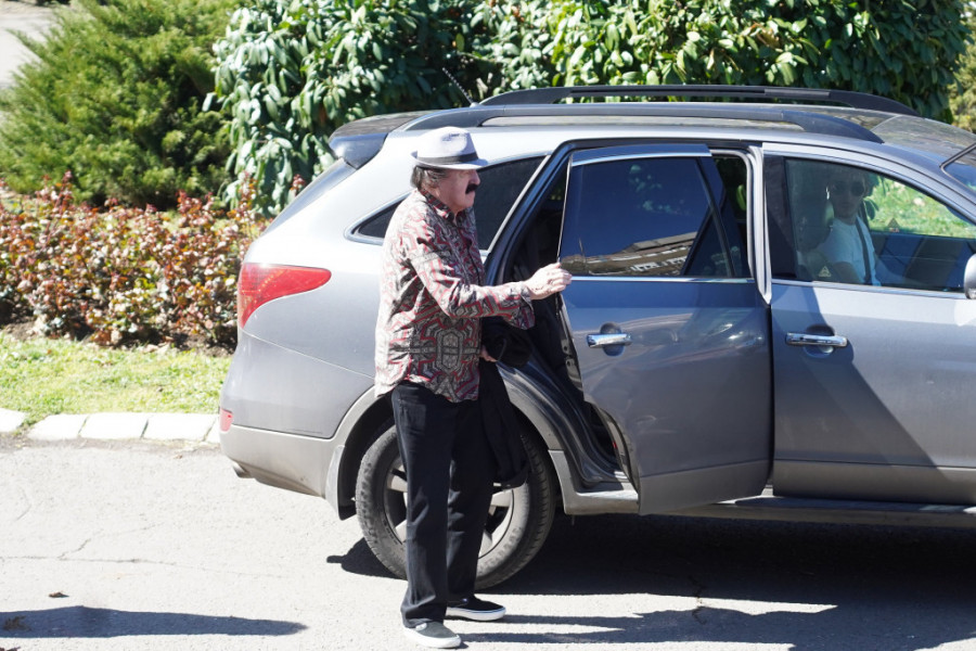 Pevač se prvi pojavio ispred suda, a dovezao ga je sin Kan i to u besnoj mašini. Haris je nosi prepoznatljiv šešir i vrlo zanimljivu košulju, koju je odabrao za ovu priliku.