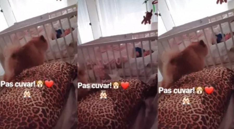 Dok Ema leži u krevecu, Raša je nadgleda, a Mia uživa u ovom prizoru koji je podelila sa svojim fanovima i prijateljima uz opis "Pas čuvar!".