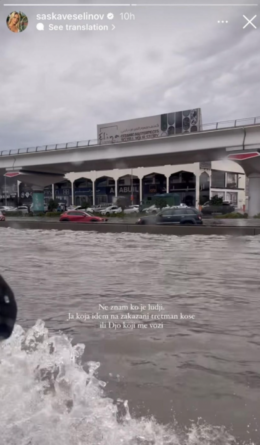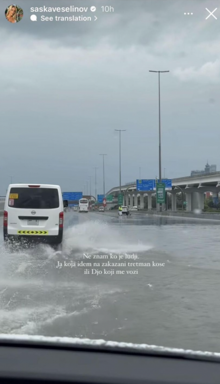 Saška je usnimila poplave na ulicama Dubaija i šta je radila sa suprugom u trenutku nevremena. Automobili su bili delom u vodi, neki skoro skroz poplavljeni, ali to nije sprečilo Sašku da krene ka salonu lepote.