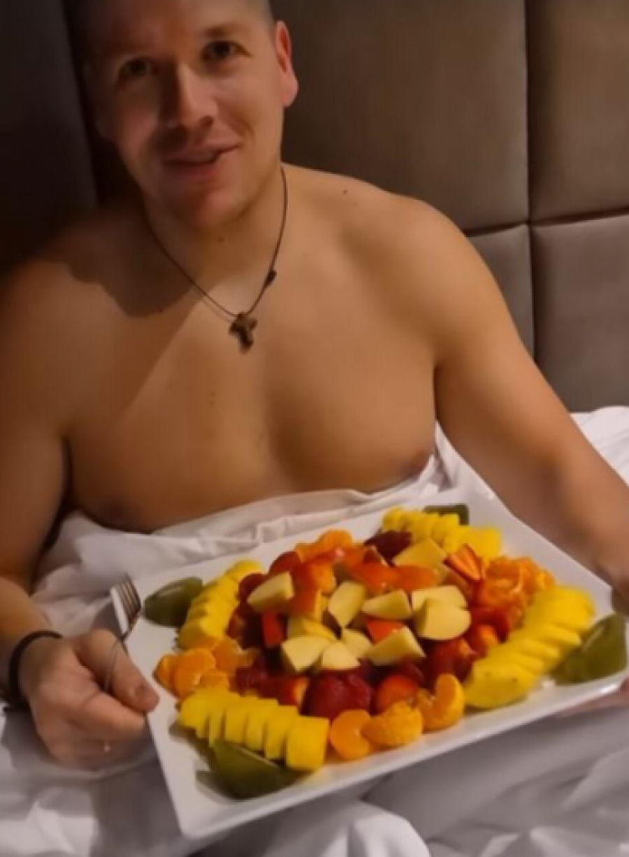 Jelena je otkrila da je za Slobu pripremljen poseban tretman i iznenađenje. Pevač je dobio sveže voće servirano u krevet kako bi započeo dan na zdrav način. Oduševljen gestom, Sloba nije skidao osmeh sa lica, a oduševljenje nije krio ni na društvenim mrežama.