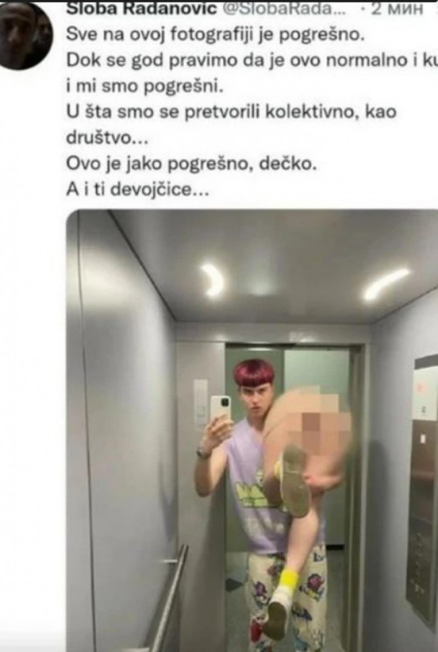 - Sve na ovoj fotografiji je pogrešno. Dok se god pravimo da je ovo normalno i kul i mi smo pogrešni. U šta smo se pretvorili kolektivno, kao društvo... Ovo je jako pogrešno, dečko. A i ti devojčice... - napisao je prvo Sloba, da bi usledio odgovor:
